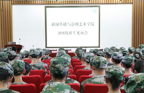 会上2018级军训团队也正式与新生见面。主持人一一对军训团队成员的履历进行介绍,这让新生对军训团队有进一步了解,也更加有利于军训工作的良好开展。