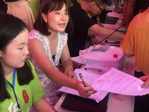 关心志愿者们的身体状况,询问整个下午的报名情况。