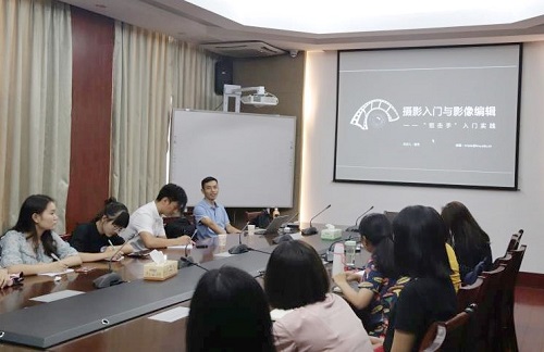 谢伟老师在北楼307室以"狙击手的入门实践"为主题对学生们进行摄影及图像处理培训。